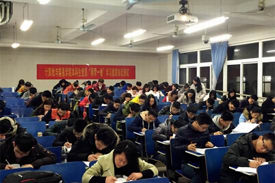 毕业班全体党员于12月29日在西二教学楼开展“两学一做”学习教育知识测试。