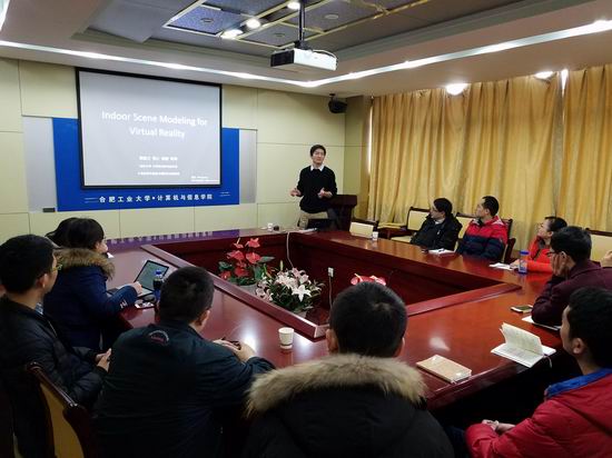 邀请,南京大学计算机科学与技术系、软件新技术国家重点实验室郭延文教授在逸夫楼408会议室做了题为“虚拟现实中的室内场景几何和材质建模”的学术报告。报告会由杏吧原创
