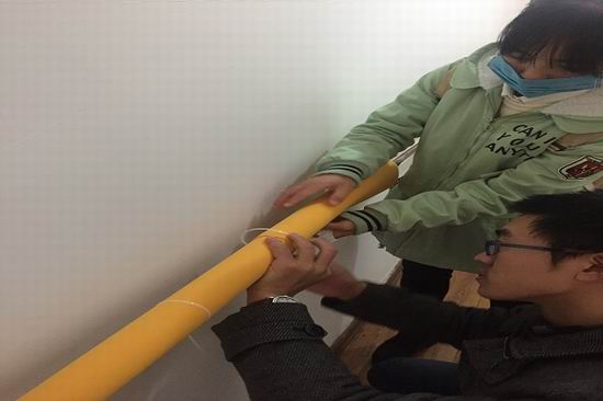11月26日上午8点整,先锋队志愿者们整装待发,去童话名苑敬老院贴海绵。到那里时,毫不意外地收到了老人们热烈欢迎。为了让老人们能尽快在使用走廊扶手时不再觉得冷,志愿者们来不及跟老人们寒暄,在志愿者队长刘家蒙的带领下大家分好队,志愿者们用自带的尺子、剪刀、刀子裁剪海绵,拿海绵绑在冰冷的铁扶手。在队伍贴海绵过程中,有一位老奶奶走出房门,看到志愿者们正蹲下绑海绵,当即留下感动的泪,嘴里还碎碎念着“谢谢同学们,谢谢合工大的同学们,你们不仅陪我们聊天,还给我们弄海绵,这弄好了之后得都暖和啊!”,听完这话,志愿者们更是干劲十足,短短一个小时就将敬老院所有扶手贴满了海绵。