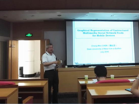 邀请,美国纽约州立大学布法罗分校陈长汶教授在学术会议中心二楼小报告厅做了题为 “ Graphical Representation of Unstructured Multimedia Social Network Feeds on Mobile Devices”的学术报告。报告会由徐常胜院长主持,杏吧原创