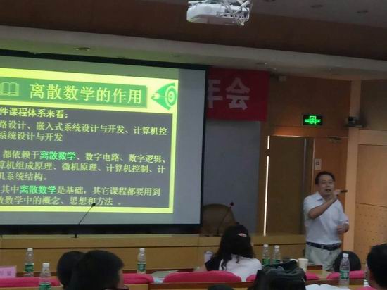 汪荣贵教授共同主持了离散数学课程的教学研讨,与会代表积极发言、相互启发,取得了良好的效果。