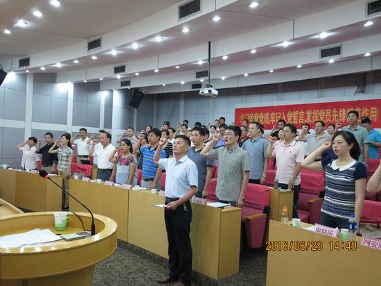 党委组织全院84名教工党员以“重温入党誓言”和“学习党章、党规和系列讲话知识竞赛”形式,开展了党的生日纪念活动。全院教工党员在领誓人的带领下,面对鲜红的党旗,郑重举起右手,重温入党誓词,庄严向党宣誓。誓词声响彻会场,通过重温入党誓词,让全体党员在感受到党员责任、使命、荣耀的同时,时刻以党员标准严格要求自己,发扬优良传统,坚定理想信念,履行好党和人民赋予的职责,践行好对党的庄严承诺。随后开展了“学习党章、党规和系列讲话知识竞赛”活动,竞赛活动分为书面答卷和现场抢答两个环节,书面答卷环节中每位党员都独立思考、认真答题,现场抢答环节中党员们则踊跃抢答、互相讨论、充分交流,这种生动活泼的形式进一步激发了大家学习党章、党规和系列讲话知识的热情,增强了全体党员的自觉性和责任感,激励大家以更坚强的党性、更优良的作风,在工作和生活中充分发挥党员的先锋模范作用。