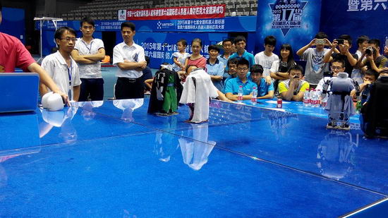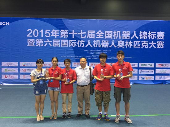 2015年第十七届全国机器人锦标赛暨第六届国际仿人机器人奥林匹克大赛于7月27日-29日在深圳市举行,我校HfutEngine代表队5名参赛队员在方宝富副教授的带领下,夺得了仿人机器人点球、服务类机器人捡垃圾比赛2项冠军,获得仿人机器人单人舞蹈和双人舞蹈2项亚军,获得仿人机器人短跑二等奖。推送的机器人小品项目-荆轲刺秦获得大赛的最佳演示奖。蔡鹤皋院士观看了我校的机器人比赛并给与了高度评价。这也是我校机器人代表队历年来获得的最好成绩。