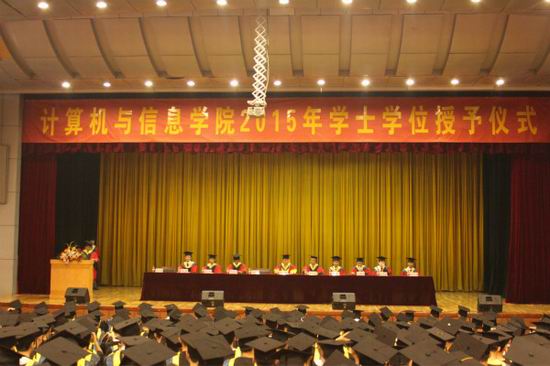 6月24日下午,学院2015届本科生毕业典礼暨学士学位授予仪式在屯溪路校区斛兵礼堂举行。副校长吴玉程、学院学位评定委员会全体委员出席此次学位授予仪式。仪式由学院副院长郑利平主持。