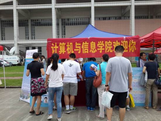 6月25日上午,“2015年部委高校在皖招生咨询会”在我校翡翠湖校区东操场隆重举行。为加大今年的高招宣传力度,切实提高杏吧原创 生源质量,学院各系所任课老师和辅导员亲临高招咨询会现场,为广大考生及其家长提供咨询。