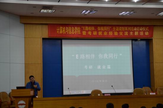 “E路相伴,你我同行”生涯规划系列活动启动仪式暨考研就业经验交流主题活动在学术会议中心一楼报告厅召开。院相关老师、2011级优秀学生代表以及2012级全体同学出席了本次活动。