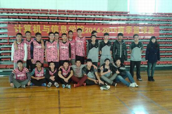 2014年班级男子篮球联赛决赛在翡翠湖校区东篮球馆举行。经过2013、2014级18个班近两个月的角逐,通信工程13-2班与电子信息工程14-2班成功会师决赛。