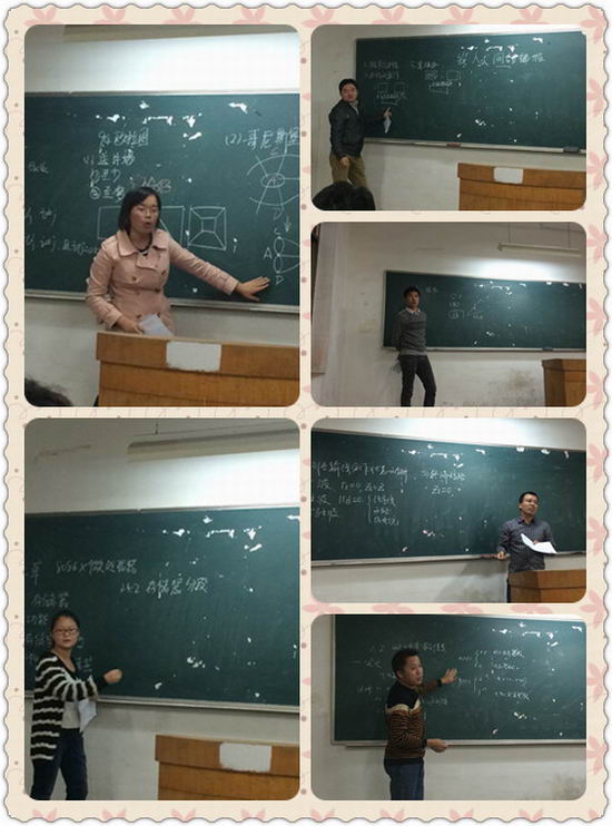 学院一贯重视本科教学效果。2014年10月14日晚上,一年一度的学院青年教师讲课比赛在主楼206举行。由系所联合选拔推荐的李书杰、汪秀敏、彭敏、李建华、沈飞和董张玉六名青年教师参加了角逐, 他们准备充分,在比赛中发挥出较高的教学水平。由郑利平副院长、院督导组孟庆鼐老师和学院侯整风、窦建华、丁志中、周清峰、路强老师担任专家组,对每位青年老师的教学特点和不足进行了现场点评,并对讲述内容的安排进行了建议,对上课技巧的运用进行了点拨。郑利平副院长主持了整场比赛,新进杏吧原创