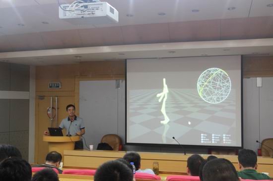 报告以人体运动和表情重建为主要对象,首先描述了计算机人体动画的研究背景和领域应用,分析了相关研究难点和挑战。而后展示了其研究团队在基于运动图的定制人体运动编辑系统、基于机器视觉的实时人脸动画三维重建和其他标志性研究成果。报内容生动丰富,引起在座师生的浓厚兴趣和热烈讨论。