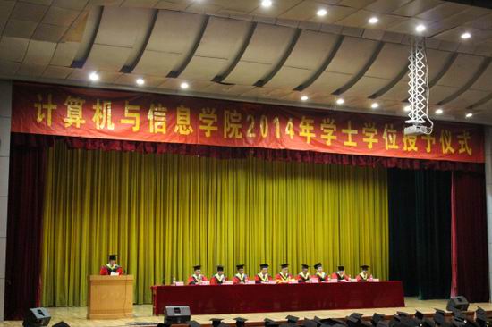 2014届本科生毕业典礼暨学士学位授予仪式在屯溪路校区斛兵礼堂举行。副校长吴玉程、学院领导和部分导师代表出席了仪式。院党委副书记、副院长何庆领主持仪式。