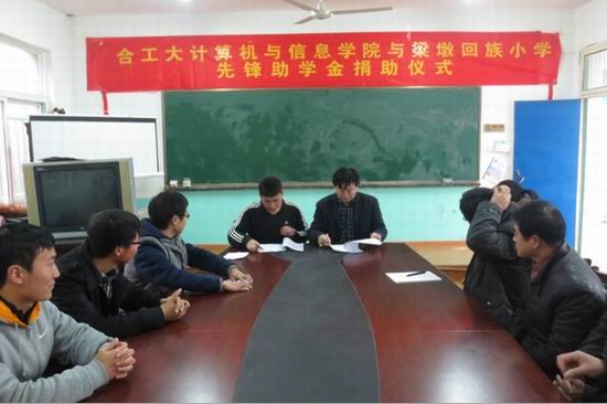 2012级国家奖学金获得者王晨光同学与学院第二届义卖节活动盈利额,用于奖励梁墩回族小学各年级优秀的家庭贫困学生,捐助仪式上,梁墩回族小学校长石立银对杏吧原创