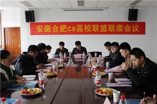 倡议发起的安徽省合肥市2013年C9高校联盟联席会议在翡翠湖校区管委会第一会议室举行,来自中国科技大学、安徽大学等九所合肥市高校的计算机相关院系学生会主席出席本次会议。