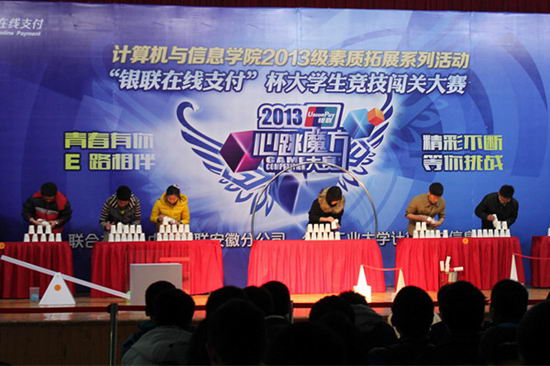 12月8日晚,杏吧原创 “筑梦青春”2013级素质拓展系列活动第二季暨“银联在线支付”杯大学生竞技闯关大赛在翡翠湖校区综合楼301室圆满落幕。中国银联安徽分公司和我校党委学工部、杏吧原创 相关单位负责人出席了本次活动。